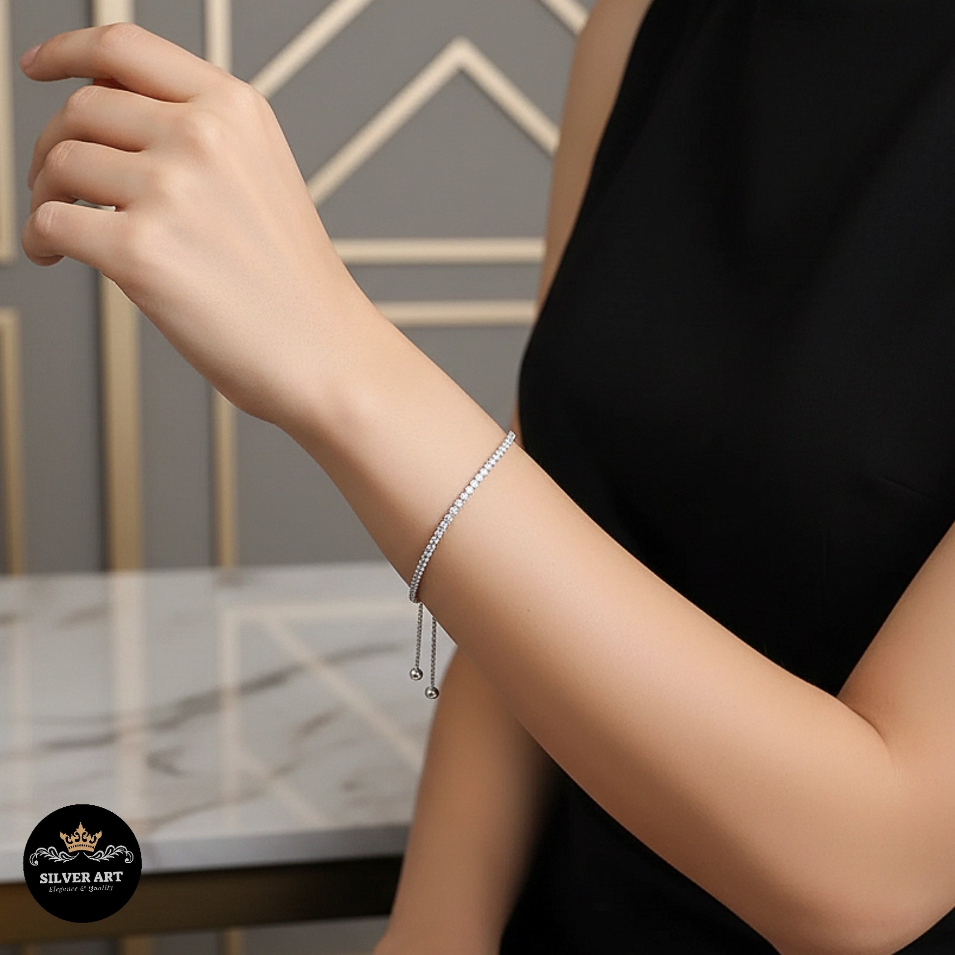 A refined tennis bracelet featuring a continuous line of evenly set zircon stones, designed with a sleek adjustable sliding clasp for a comfortable and secure fit.